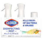 Disinfect germy surfaces* throughout your home with Clorox® Multisurface Disinfecting Mist, Lemongrass Mandarin. This multi-surface disinfecting mist kills 99.9% of bacteria and viruses*, including the virus that causes COVID-19*. Easy to use, this disinfecting mist helps protect your home from germs*, including during cold and flu season*, by spraying on high-touch surfaces like doorknobs, countertops* and faucets. It even sanitizes soft surfaces like couches, car interiors, and bedding. Designed for use with Clorox® Disinfecting Mist’s continuous sprayer, which creates a fine mist that evenly and easily coats your surfaces and disinfects without wiping. Just spray and go*. Clorox® Disinfecting Mist stops odor-causing bacteria* growth for up to 24 hours on non-food contact surfaces, plus it freshens and deodorizes the air with a vibrant Lemongrass Mandarin scent.