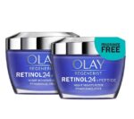 Olay Regenerist Retinol 24 Facial Moisturizer penetrates deep into the skin’s surface layers. Our proprietary formula, with a Retinoid complex, delivers visible improvements in fine lines and wrinkles, smoothness, brightness, firming, dark spots and pores. Plus it hydrates for twenty four hours! This night cream is formulated without synthetic dyes, phthalates and mineral oil. And we didn’t stop there – our scientists thoughtfully crafted this fragrance-free moisturizer so that it absorbs quickly and goes deep into your skin’s surface layers so you wake up every morning to younger-looking, radiant skin. It’s even proven to hydrate better than the $100 Retinol Cream. Use Olay in the evening for twenty eight days and see true skin transformation. This includes two 1.7 oz jars of Olay Regenerist Retinol 24 Face Moisturizer.